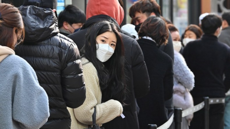 سكان يصطفون لشراء أقنعة في دايغو في كوريا الجنوبية يوم الخميس 27 فيفري 2020