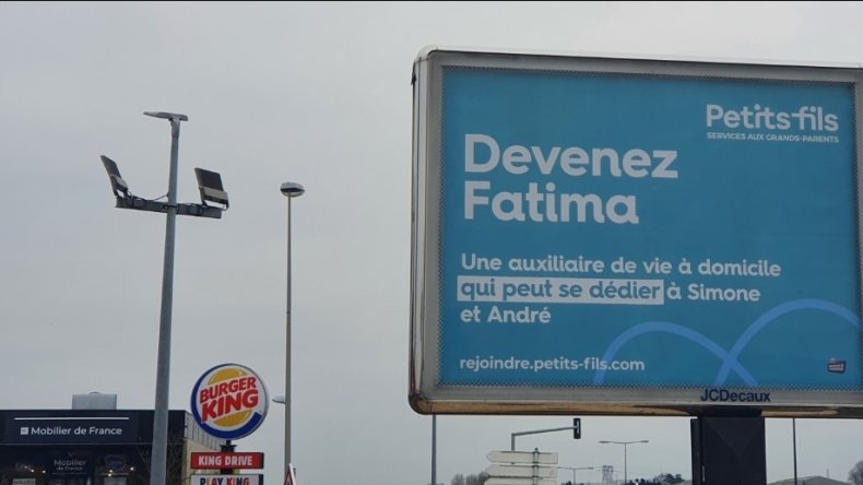 واعترض نشطاء وسياسيون على الإعلان الترويجي لشركة “Petit Fils”، بعد نشرها عبارة: “كوني فاطمة.. مساعدة رعاية منزلية يمكنها تكريس نفسها لخدمة سيمون وأندريه”، وذلك على لوحات إعلانية متحركة في العاصمة باريس.