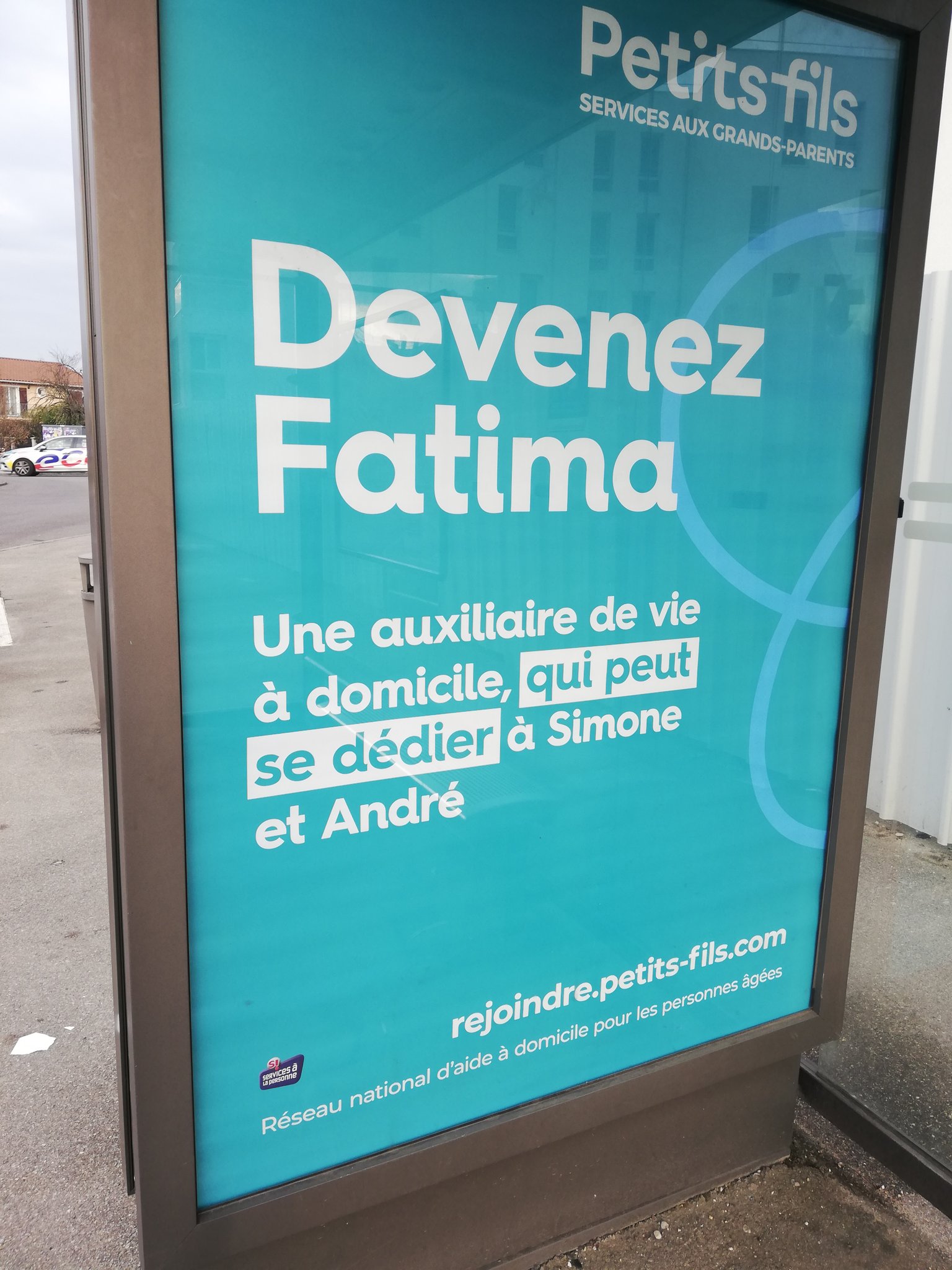 Depuis hier, quelques personnes nous ont fait part de leur mécontentement ou incompréhension concernant l’une de nos affiches publicitaires « Devenez Fatima, une auxiliaire de vie à domicile qui peut se dédier à Simone et André » (1/5) pic.twitter.com/fBvsVVigwe