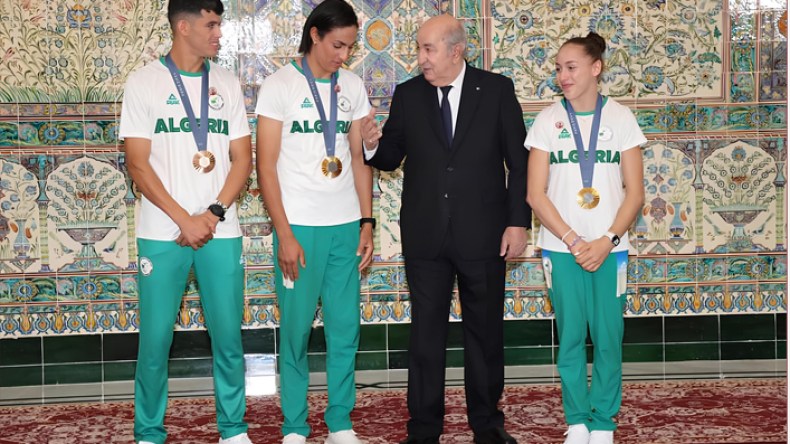 وكان رئيس الجمهورية قد هنأ على المباشر الرياضية الجزائرية، كايليا نمور، بعد تتويجها بالميدالية الذهبية، حيث قال: “باسم الجيش كافة وباسم رئاسة الجمهورية وباسم الشعب الجزائري، نهنئ أنفسنا ورياضيتنا نمور على الميدالية الذهبية”.
