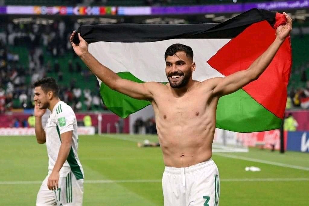 وطاف زملاء القائد ومتوسط الميدان ياسين براهيمي حول أرجاء ملعب “الثمامة” بِالعاصمة القطرية الدوحة، رافعين علم فلسطين، وهم يُعبّرون عن فرحتهم بِبلوغ محطّة المربّع الذهبي، بعد إزاحة العقبة المغربية في ربع النهائي.