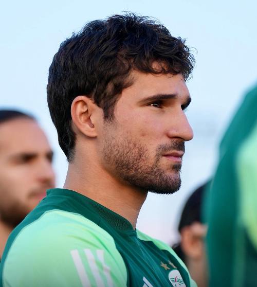 حسام عوار في حصة تدريبية لـ "الخضر" شهر نوفمبر الحالي.