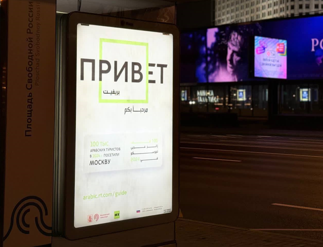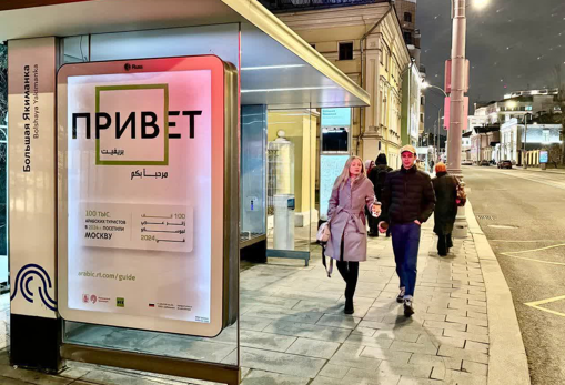 أطلقت هيئة المواصلات في العاصمة الروسية موسكو، مشروعا إرشاديا للسياح العرب. وهو يتضمن تثبيت لافتات تحمل عبارات ترحيبية باللغتين الروسية والعربية في محطات النقل الرئيسية بالمدينة.