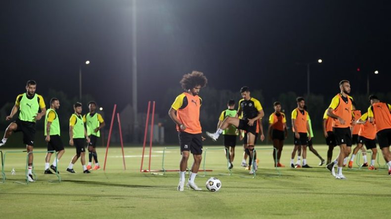 وتُظهر الصورة المُدرجة أعلاه بغداد بونجاح (في الوسط)، يُشارك زملاءه في فريق السد القطري التدريبات، التي انْتُظمت مساء الخميس.