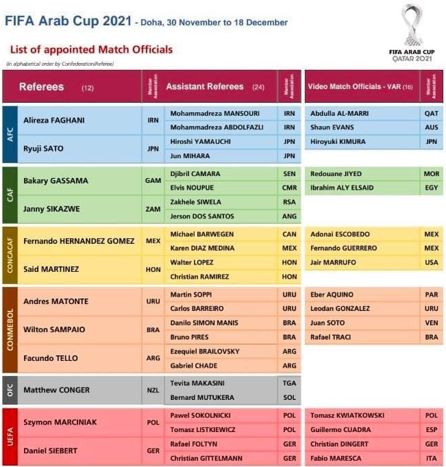 لن يُشارك الحكام العرب من قارتَي إفريقيا وآسيا، في بطولة العرب المُقرّر تنظيمها بِقطر ما بين الـ 30 من نوفمبر والـ 18 من ديسمبر المقبلَين.