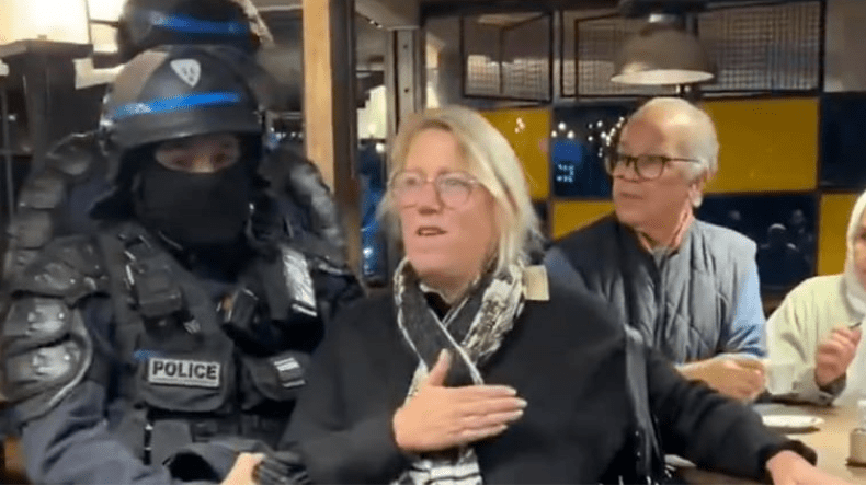 على هامش احتجاجات باريس، انتشر فيديو على مواقع التواصل يُظهر رجال الشرطة وهم يطردون نائبة عن الجبهة الشعبية الجديدة من مقهى للتحقق من أوراق هويتها.