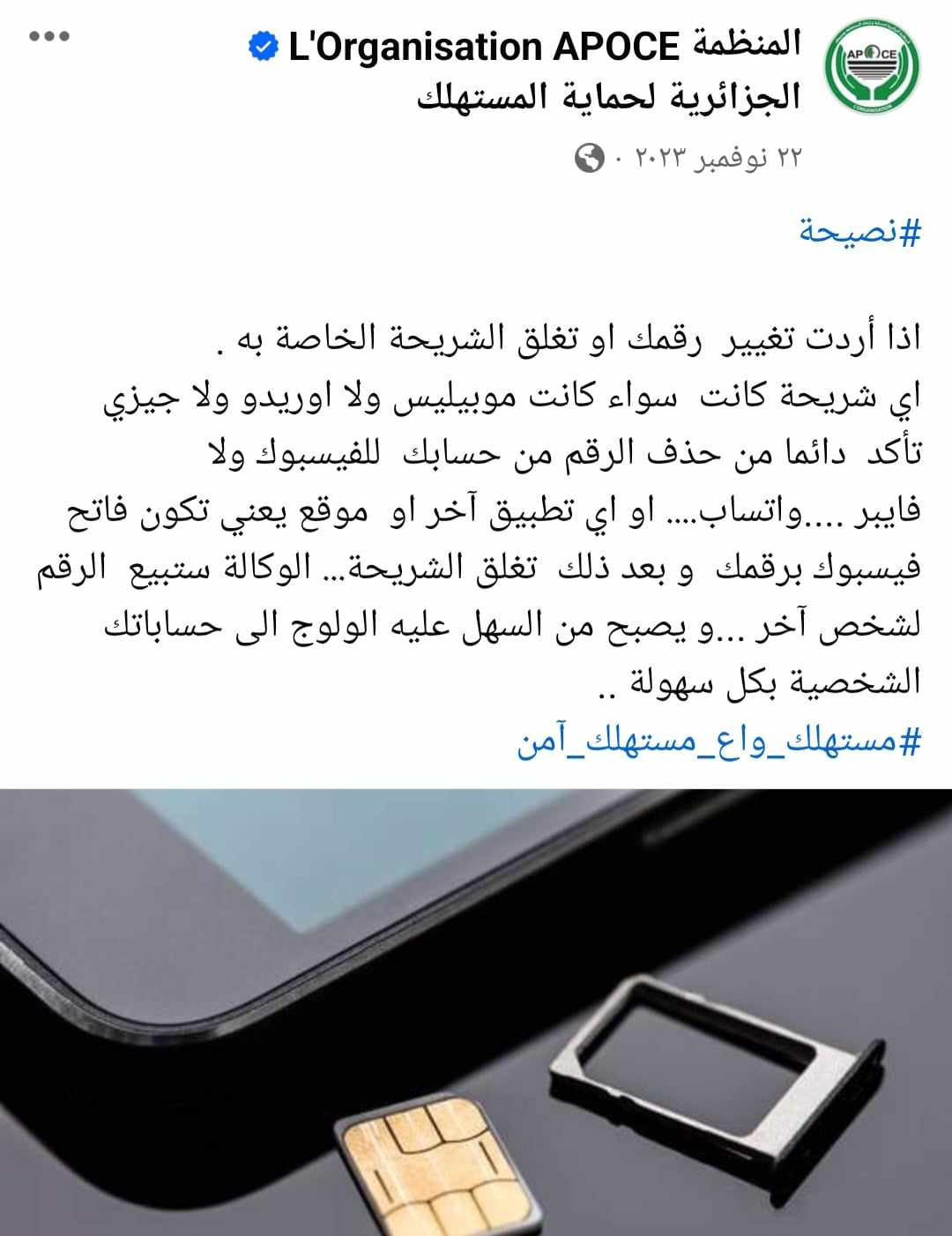 – حذف الرقم من حسابك في الفيسبوك أو فايبر،أواتساب، أو أي تطبيق آخر، لأن الوكالة ستبيع الرقم لشخص آخر ويصبح من السهل عليه الولوج إلى حساباتك الشخصية بكل سهولة، وفقا للمنظمة الجزائرية لحماية المستهلك.