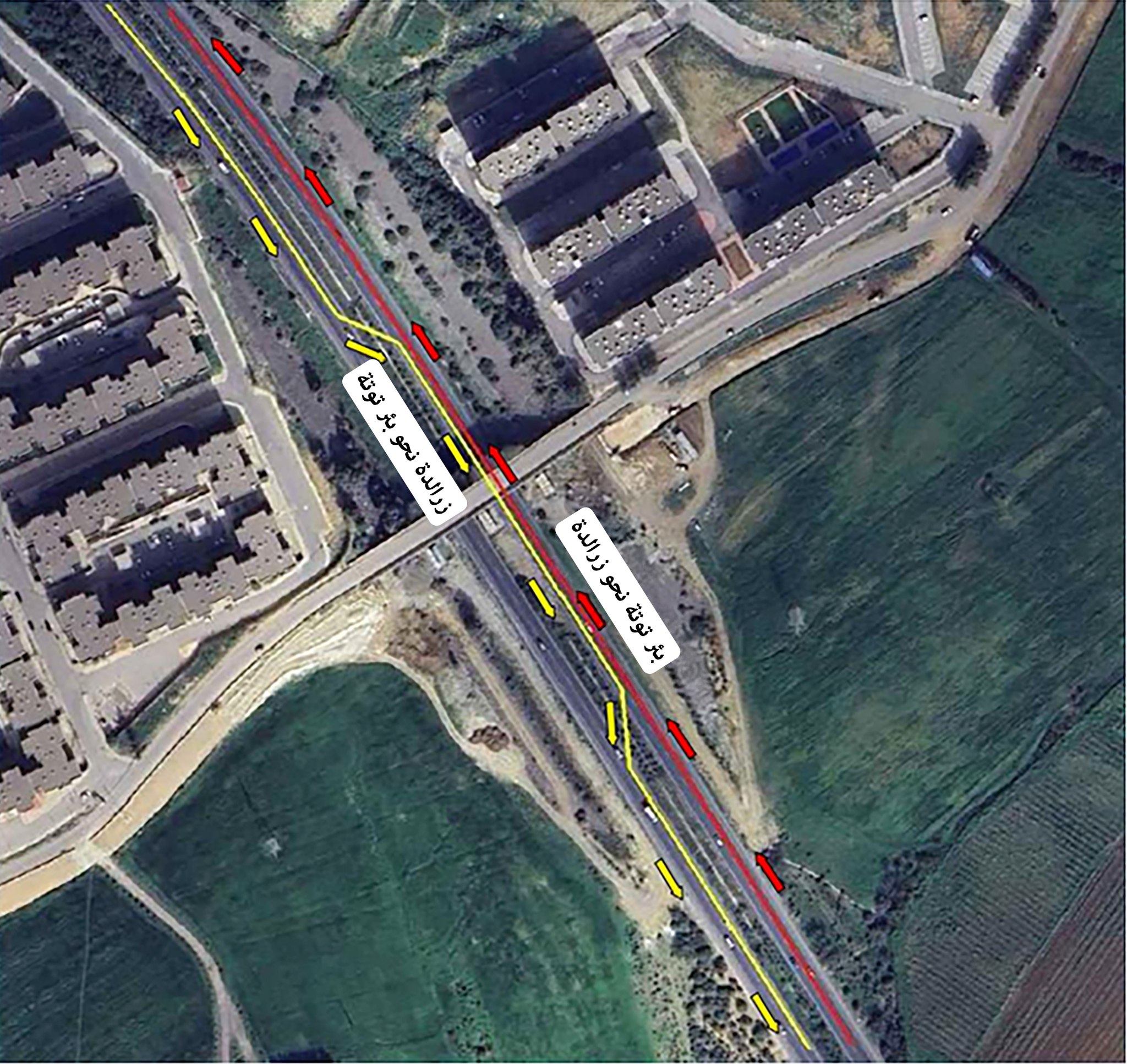 – سيتم توجيه المركبات عبر المنفذ المؤدي إلى طريق الاتجاه المعاكس (زرالدة – بئر توتة)، ثم العودة إلى الطريق الأصلي (بئر توتة – زرالدة).