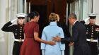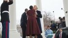 والمسألة، لم تتوقف عند هذا الحد، بل همّ ترامب بالدخول للبيت الأبيض أولا، تاركا ميلانيا خلفه، ما جعل باراك وميشيل يتداركان الموقف ويدفعان بها إلى الداخل مربتين على ظهرها.