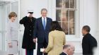 فالرئيس الأمريكي الجديد لم ينتظر السيدة الأولى عند خروجه من السيارة وانطلق باتجاه أوباما وزوجته ميشال مباشرة متناسيا وجود ميلانيا، على العكس من أوباما الذي انتظر زوجته بجانب باب السيارة ليصعدا سويا السلالم في حفل تنصيبه سنة 2009، حيث كان بانتظارهما الرئيس الأسبق جورج دبليو بوش.
