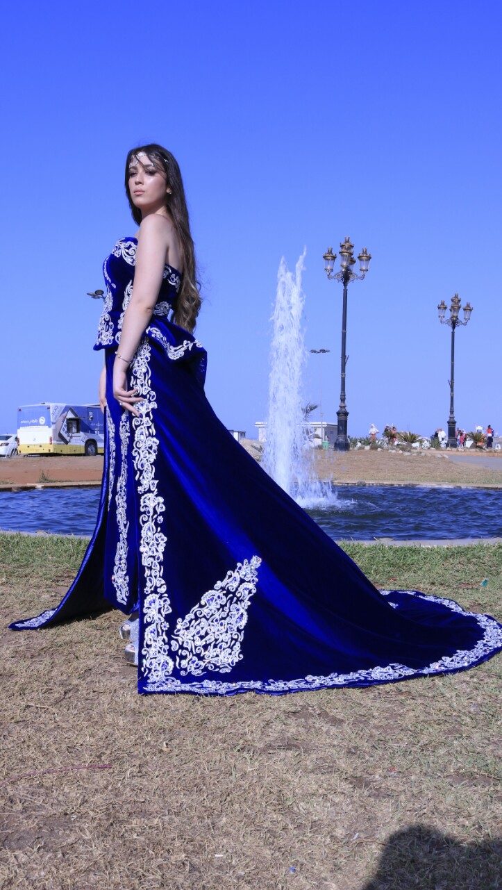 للأزرق عشق آخر ..موديل عصري بروح تقليدية أصيلة مرصع بالخيوط الفضية.