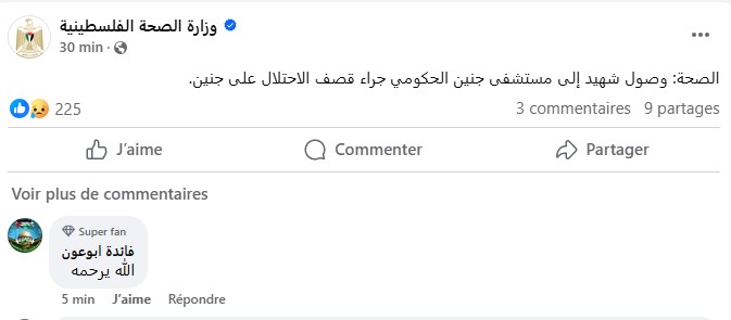 وكانت وزارة الصحة الفلسطينية، قد أفادت في بيان نشرته عبر حسابها الرسمي على فيسبوك بوصول شهيد إلى مستشفى جنين الحكومي جراء قصف الاحتلال، فيما أفادت مصادر بوقوع عدد من الإصابات.