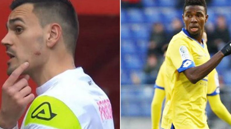 وأظهر حارس المرمى جيروم بريور حامي عرين فريق فالونسيان، لِوسائل الإعلام آثار عضّة تعرّض لها في وجهه (الصورة/ من اليسار)، مُتّهما اللاعب السنيغالي الحسين تيون (الصورة/ من اليمين) متوسط ميدان نادي سوشو، بِالإعتداء عليه.