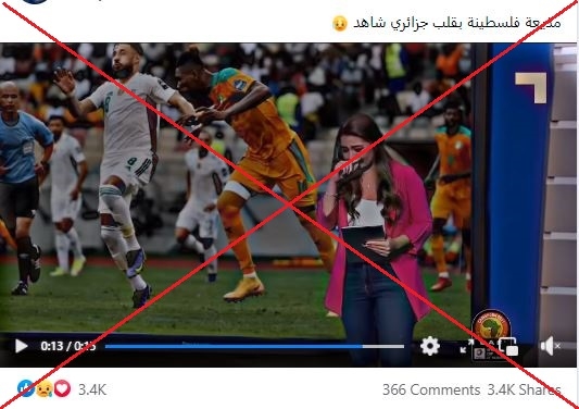 تداول ناشطون، مقطعا مصورا لمذيعة تبكي أثناء مشاهدتها لمباراة في كرة القدم، وقالوا بأنها فلسطينية حزينة لخسارة منتخب الجزائر في أمم إفريقيا.