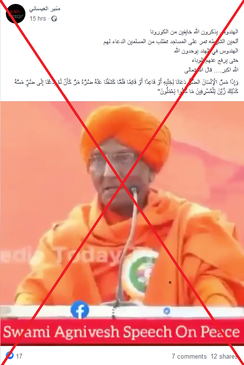 أما ما يقوله في الفيديو، فهو جزء من خطاب حول السلام ولا يمتّ بصلة إلى انتشار كوفيد-19 في الهند.