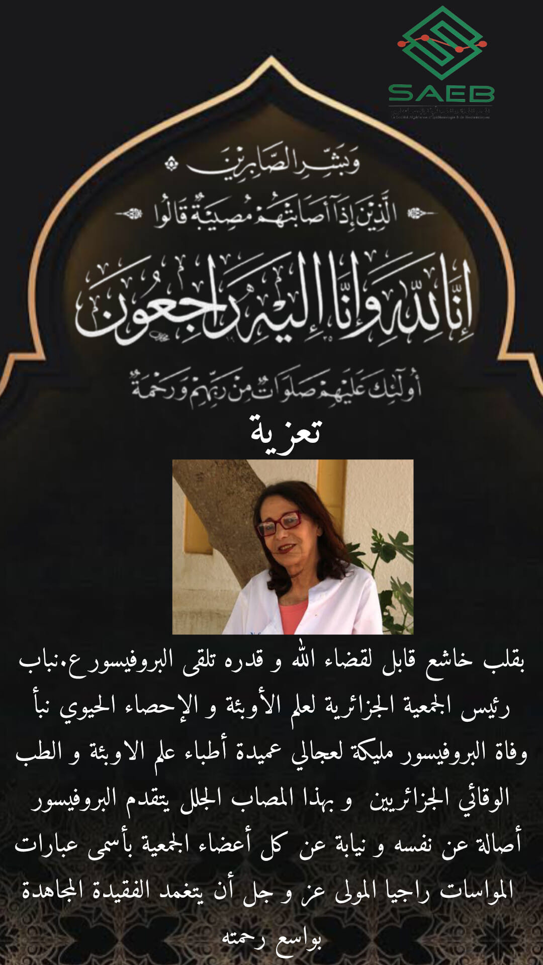 وجاء في بيان لرئاسة الجمهورية: “على إثر وفاة المجاهدة القديرة البروفيسور مليكة لعجالي، يتقدم رئيس الجمهورية، السيد عبد المجيد تبون، بخالص تعازيه وأصدق مواساته إلى عائلة الفقيدة, وكل من عرفها، راجيا من المولى عز وجل أن يشملها بواسع رحمته وأن يلهم ذويها جميل الصبر والسلوان. إنا لله وإنا إليه راجعون”.