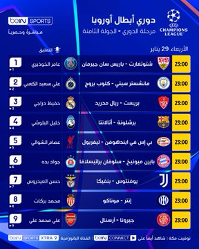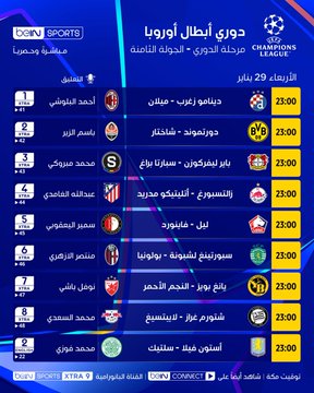 تلعب سهرة الأربعاء، الجولة الثامنة والأخيرة من مرحلة الدوري، للنسخة الحالية من دوري أبطال أوروبا.