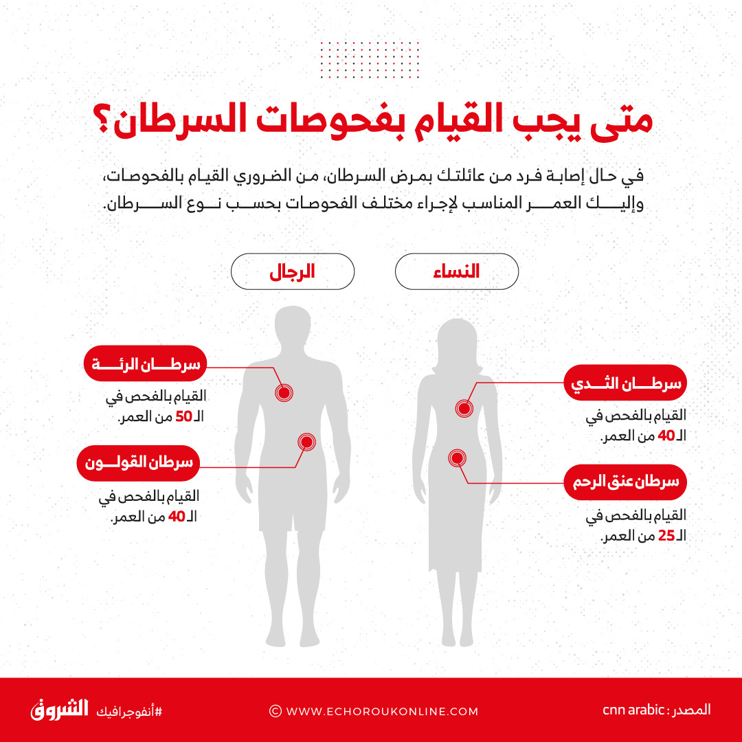 في حال إصابة فرد من عائلتك بمرض السرطان، من الضروري القيام بالفحوصات، وإذا كنت تشعر بالارتباك بشأن العمر المناسب لإجراء مختلف