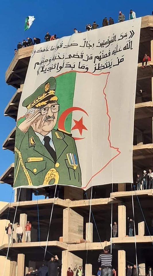 ويعتبر قصر الشعب أو البناية العملاقة بوسط مدينة برج بوعريريج، منارة للحراك الشعبي، منذ فيفري الماضي الذي رافقه قايد صالح، وهو الذي كان يطل كل جمعة مباركة بتيفو وبوستير عملاق، فيه الكثير من الرسائل للعصابة التي حاربها الراحل إلى أن وافته المنية.
