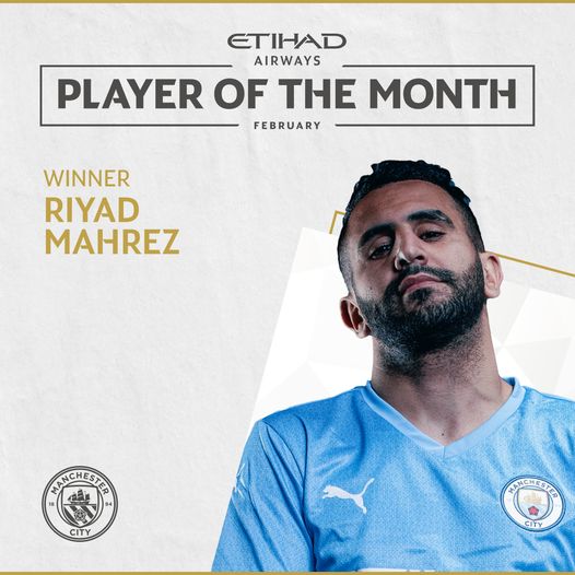 اختير النجم الجزائري رياض محرز، كأحسن لاعب في مانشستر سيتي خلال شهر فيفري..