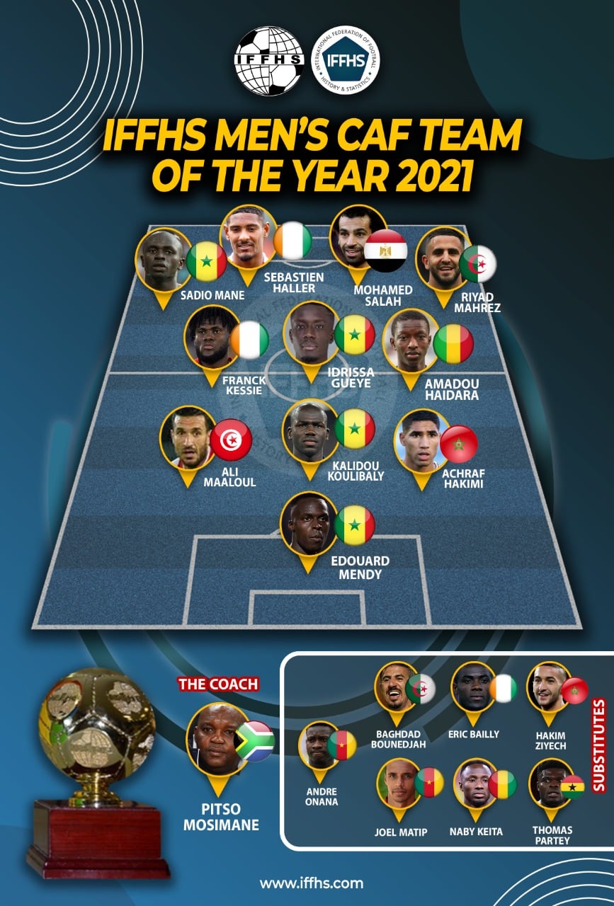 كشف الاتحاد الدولي للتأريخ والإحصاء عن فريق الأحلام  الإفريقي لعام 2021 والذي ضم النجمين رياض محرز وبغداد بونجاح.