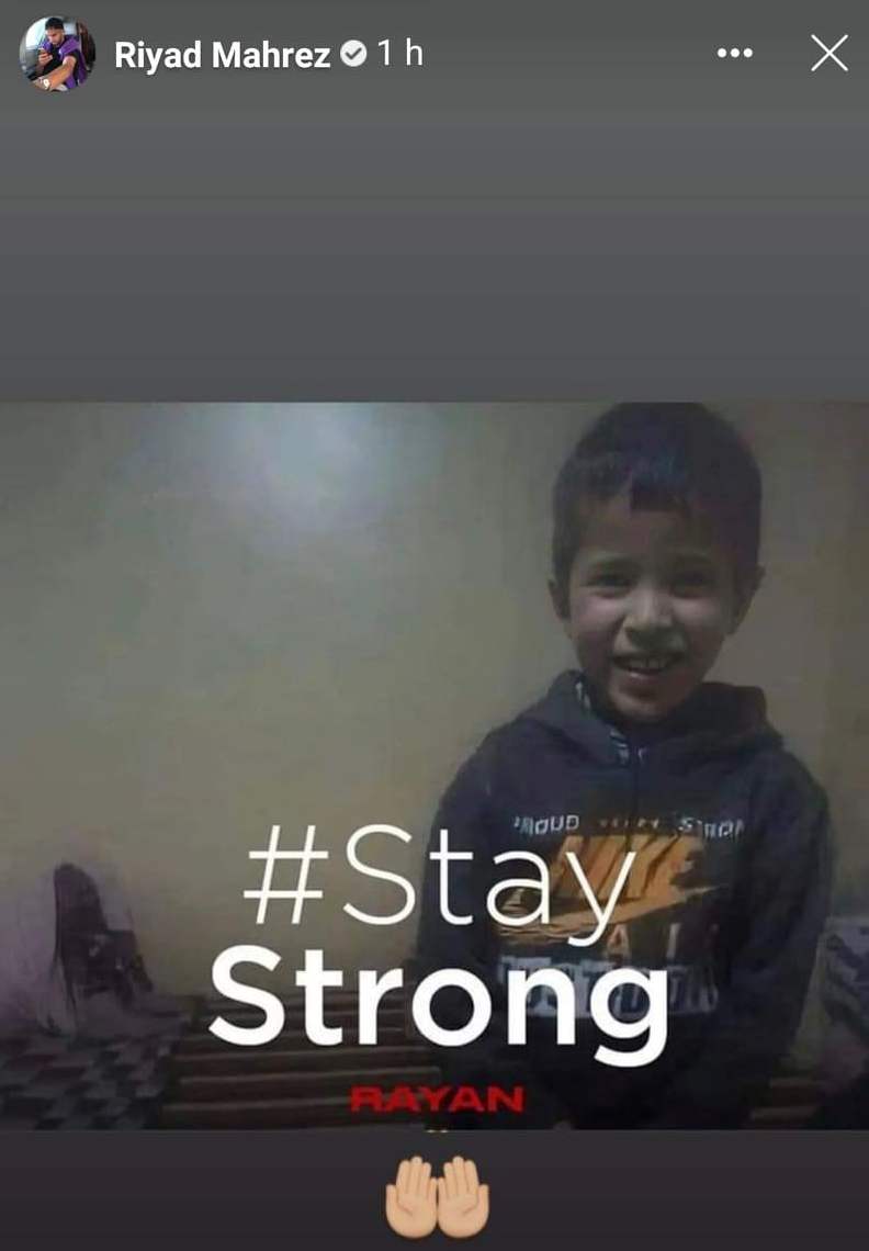 تعاطف قائد المنتخب الوطني الجزائري رياض محرز، الخميس، مع الطفل المغربي ريان العالق في بئر منذ قرابة يومَين.