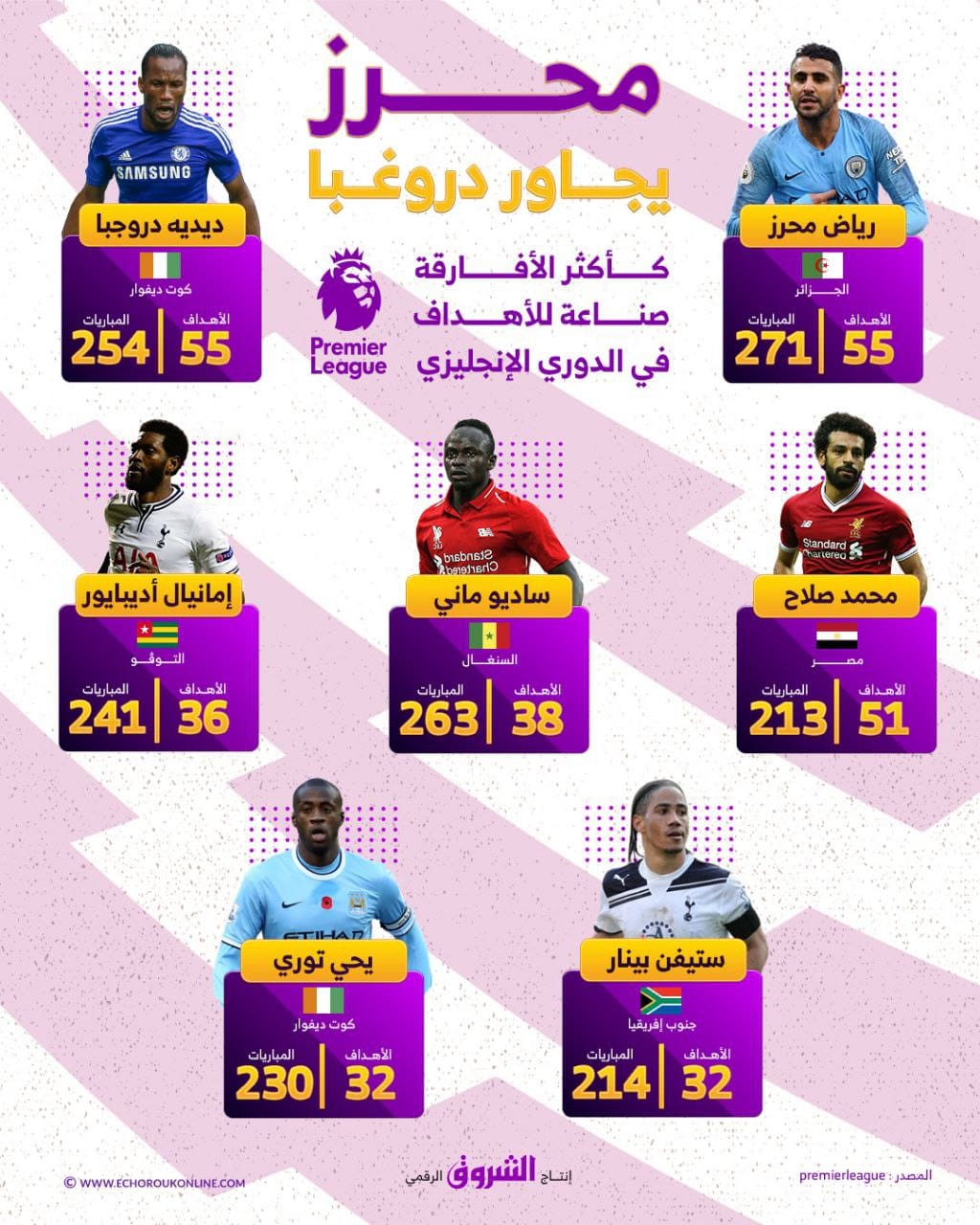 رياض محرز يجاور ديديه دروغبا كأكثر الأفارقة صناعةً للأهداف في الدوري الإنجليزي الممتاز…