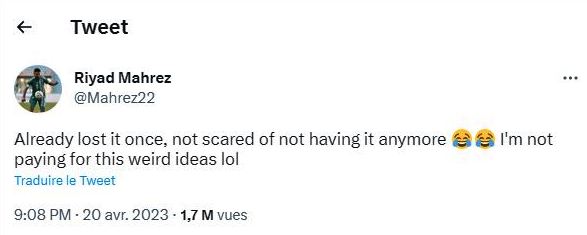 نشر النّجم الجزائري رياض محرز سهرة الخميس تغريدة مُثيرة للجدل، عبر موقع التواصل الاجتماعي “تويتر”.