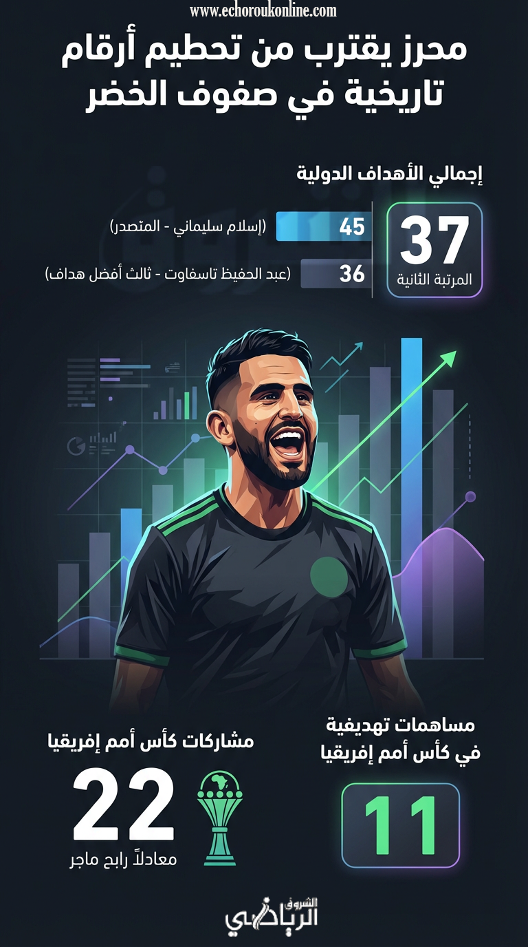 وتؤكد هذه الأرقام أن محرز يواصل الاقتراب من تحطيم أرقام تاريخية في تاريخ المنتخب الوطني، معززاً مكانته كأحد أبرز لاعبي الجيل الحالي وأكثرهم تأثيراً على النتائج.
