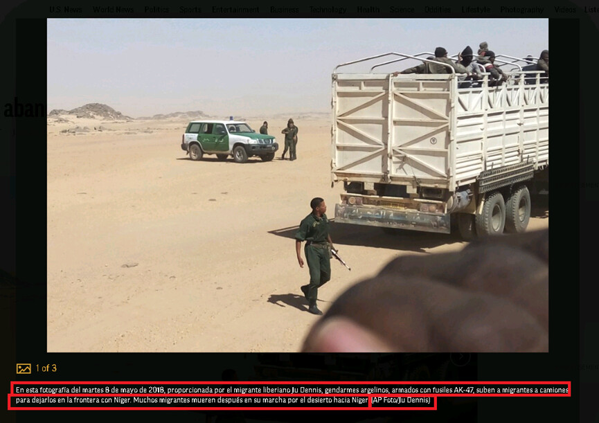 والصورة الأخيرة تعود إلى عناصر من الدرك الوطني أثناء نقلهم مهاجرين إلى الحدود النيجرية، في ماي عام 2018. والتقط الصورة جو دينيس لصالح وكالة أسوشيتد برس.
