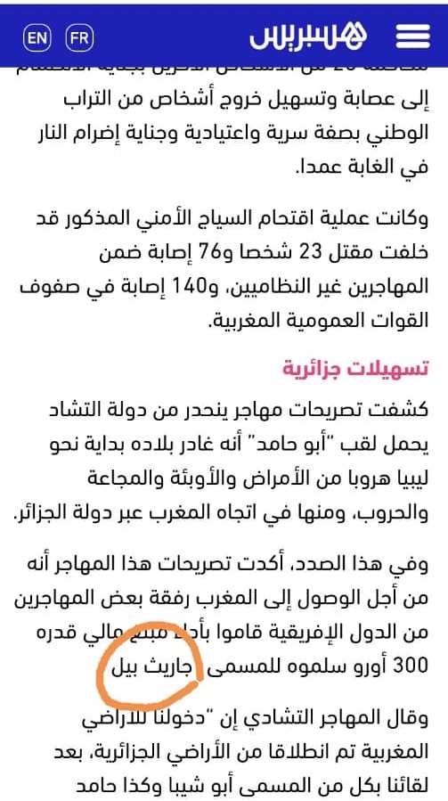 ومن الروايات التي نقلتها مواقع وصحف محسوبة على النظام في الرباط، أن مهاجرا قدم شهادة مفادها أنه من أجل الوصول إلى المغرب دفع المهاجرون من الدول الإفريقية مبالغ مالية بالعملة الأوروبية للمسمى “جاريث بيل”، (الدولي الويلزي ولاعب ريال مدريد الإسباني لسنوات)، من أجل عبور الحدود الجزائرية.