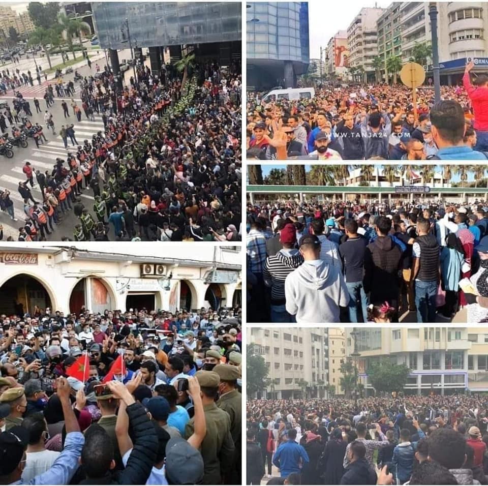 وفي الدارالبيضاء ردد مئات المتظاهرين شعارات “لا للجواز..الشعب يريد إسقاط الجواز”، وفق مواقع إخبارية محلية .