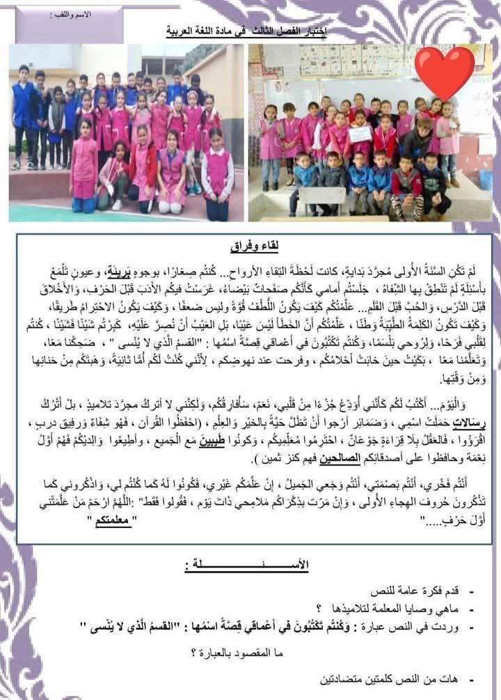 تفاعل مستخدمون لمنصات التواصل الاجتماعي مع نص امتحان في اللغة العربية موجه لتلاميذ السنة الخامسة إبتدائي بإحدى المدارس الجزائرية، الذين اختارت معلمتهم أن تودّعهم بطريقتها.