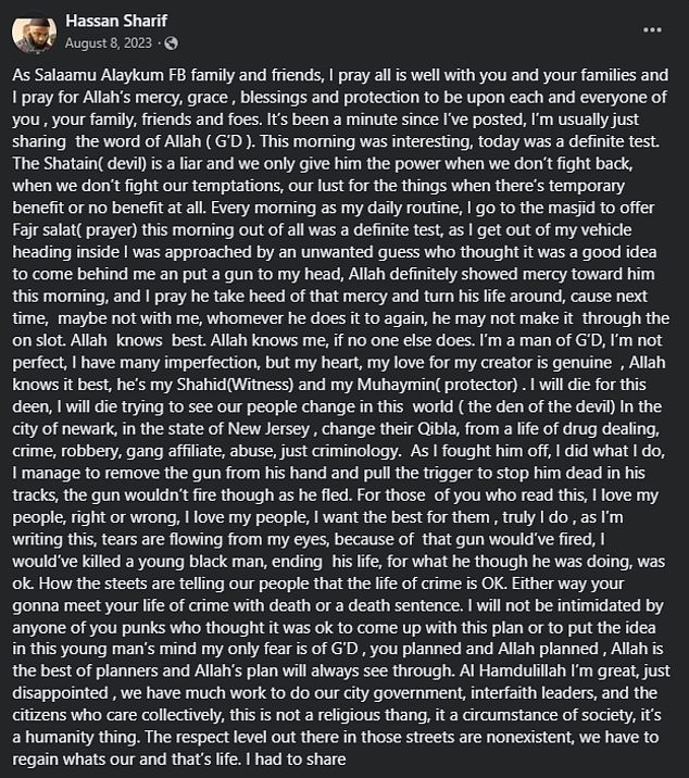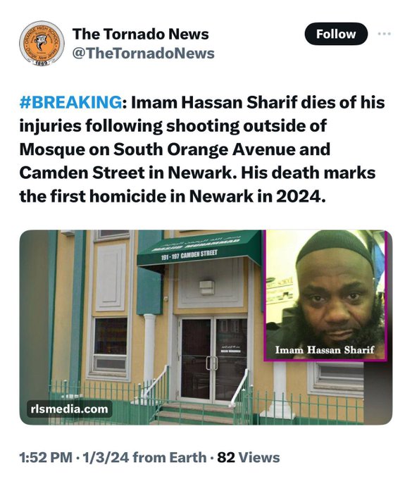 وقد تعرض إمام المسجد، الذي عرفه حاكم ولاية نيوجيرسي فيل مورفي، بأنه حسن شريف، لإطلاق نار في مسجد “محمد نيوارك” في المنطقة الواقعة بين ساوث أورانج أفينيو وشارع كامدن في حوالي الساعة 6:15 صباحًا، وفقًا لمتحدث باسم قسم شرطة نيوارك.