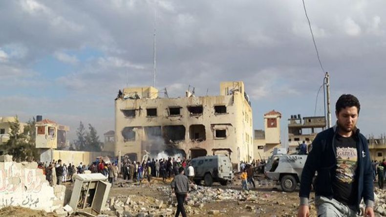 موقع تفجير استهدف مركز رئيسي للشرطة المصرية في مدينة العريش شمالي سيناء