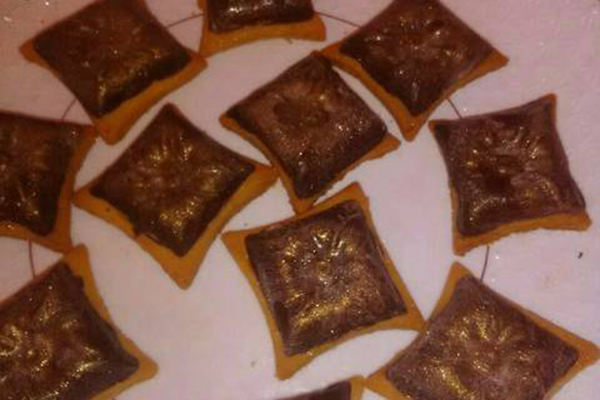 – اخلطي الفول السوداني مع حلوة الترك والعسل وضعي هذه الحشوة داخل وسائد الشكولاطة