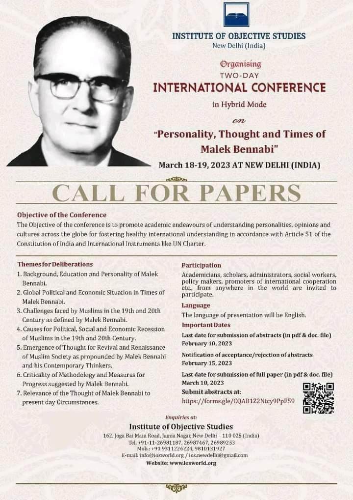 وبحسب ما أفاد موقع المركز “institute of objective studies” فإن ملتقى مالك بن نبي سيكون يومي 18 و19 مارس 2023.