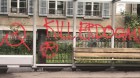 اعتدى ملثمون على القنصلية العامة لتركيا في مدينة زيوريخ في سويسرا، الاثنين، برمي الطلاء على مبناها، وكتبوا باللون الأحمر عبارة “اقتلوا أردوغان”، على موقف الحافلات قرب القنصلية وأحد الأبنية المقابلة لها.