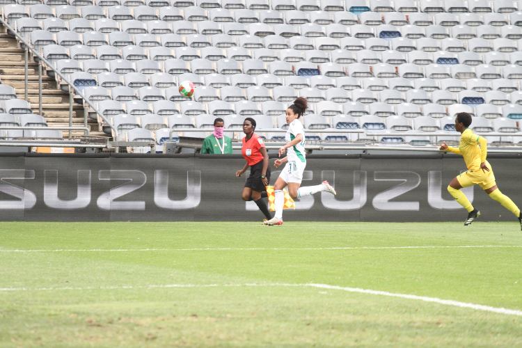 وتلقّت شباك حارسة مرمى المنتخب الوطني كلوي نغازي يمينة هدفَين من منتخب جنوب إفريقيا للإناث، مرّة في كلّ شوط، وبِالضّبط في الدقيقتَين الـ 40 والـ 89.