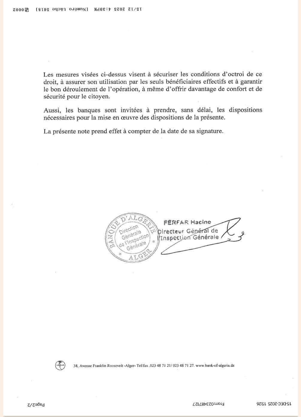 وأكد بنك الجزائر أن هذه الإجراءات تهدف إلى ضمان استفادة المستحقين الحقيقيين فقط من حق الصرف، وتعزيز الأمان والراحة للمواطنين، إلى جانب ضمان السير الحسن والشفاف للعملية.