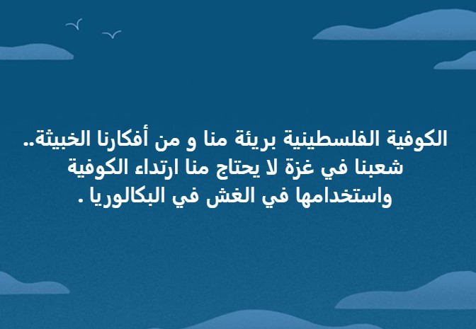 يذكر أن الكوفية أصبحت رمزا عالميا للهوية الفلسطينية ومقاومة القمع وانتشرت خلال الاحتلال البريطاني لفلسطين، لتنتشر بعدها عبر العالم في كل المسيرات الداعمة لغزة ضد العدوان الصهيوني المستمر.