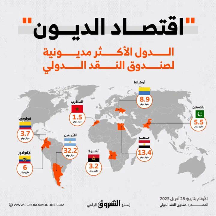 وأمام هذه الأوضاع الصّعبة لجأت 4 دول عربية، وهي مصر وتونس ولبنان والمغرب، بين سنتي 2022 و2023، لطلب قروضٍ جديدةٍ من صندوق النقد الدّولي، المؤسّسة المالية الدُوليّة التي يقع مقرّها بواشنطن وتأسّست سنة 1945.