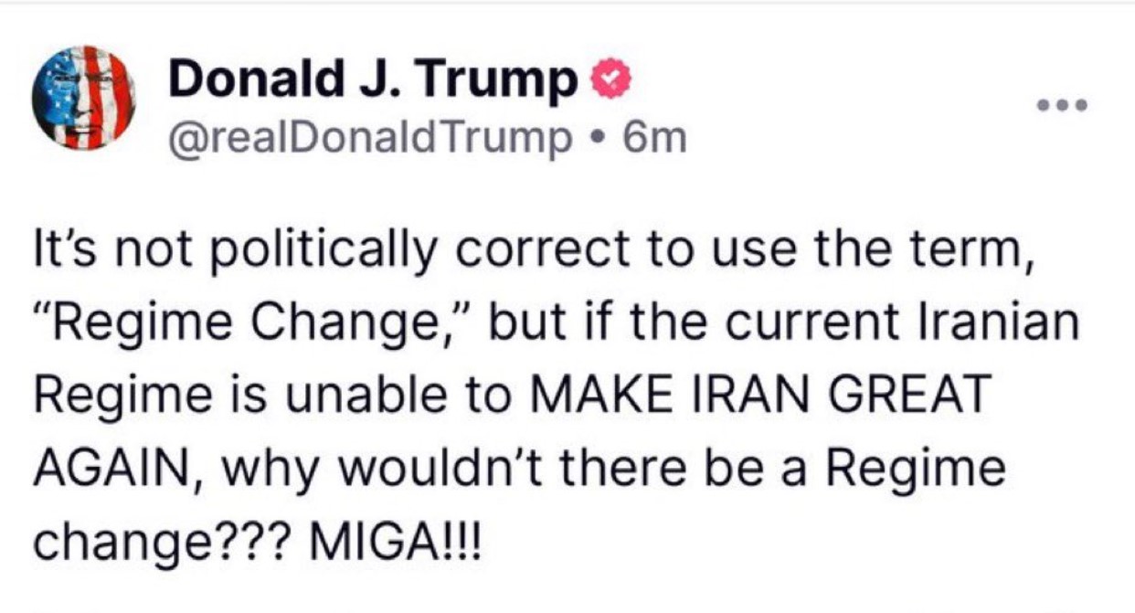 وجاء تساؤل داغرس عن الانتقال الدراماتيكي في الخطاب خلال يوم واحد، عقب تدوينة ترامب التي نشرها عبر منصته تروث سوشيال والتي قال فيها: “”الله يبارك إسرائيل، الله يبارك إيران..”، وذلك بعد وقت قصير من تحريضه على تغيير النظام في إيران بقوله: “إذا كان نظام إيران غير قادر على جعلها “عظيمة مرة أخرى” لماذا لا يكون هناك تغيير فيه”.