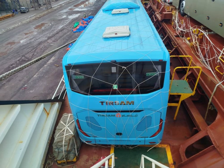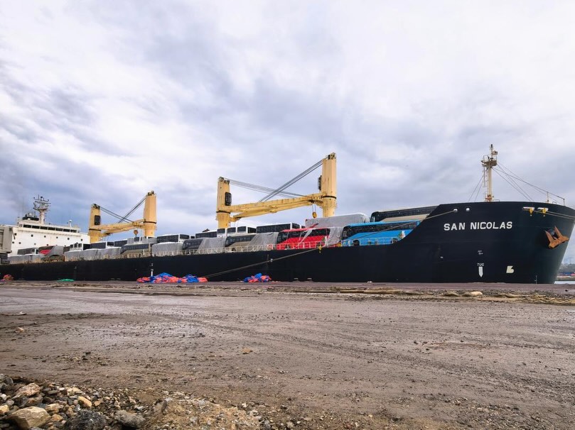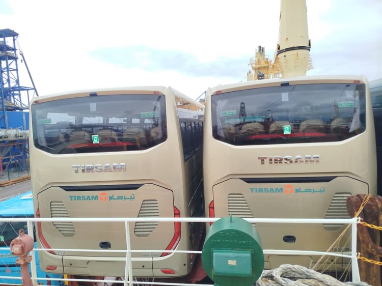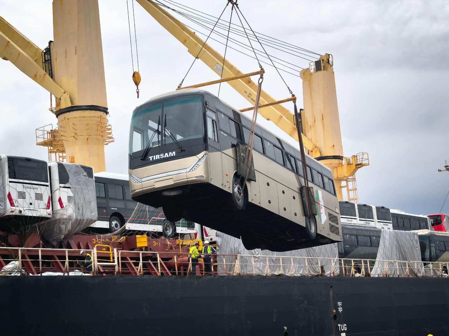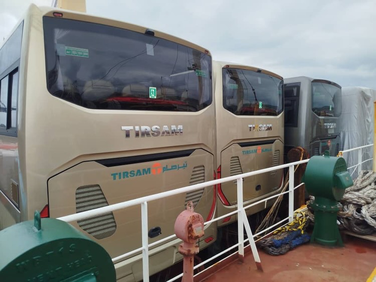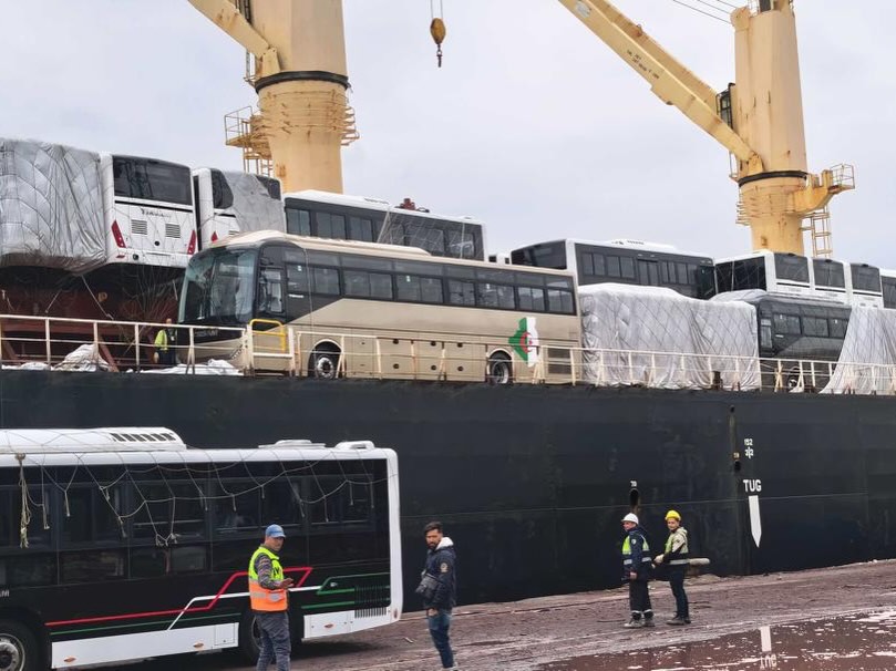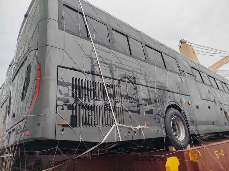 من نوع “TS11” بسعة 51 مقعداً.. ميناء جن جن يستقبل شحنة جديدة من الحافلات المستوردة