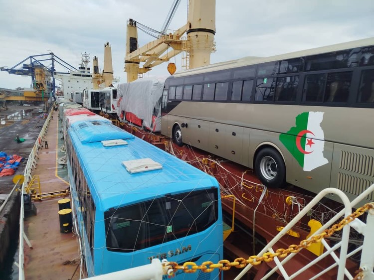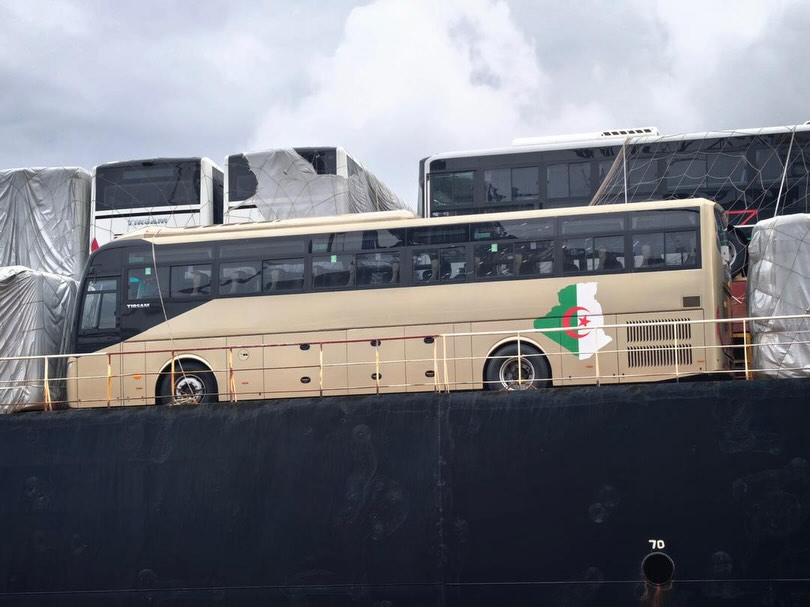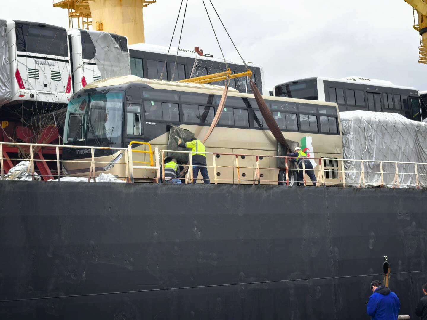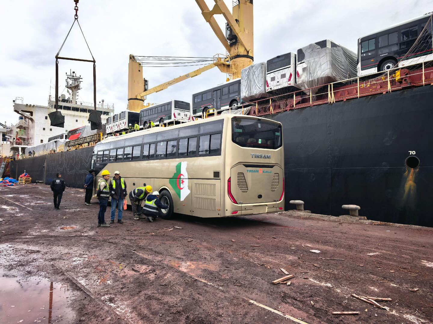 وصلت أمس الأحد إلى ميناء جن جن دُفعة جديدة من حافلات النقل العمومي من نوع TS11 بسعة 51 مقعداً للحافلة، في إطار برنامج استيراد 10.000 حافلة الذي أقره رئيس الجمهورية عبد المجيد تبون لتعزيز وتحديث منظومة النقل العمومي في الجزائر.
