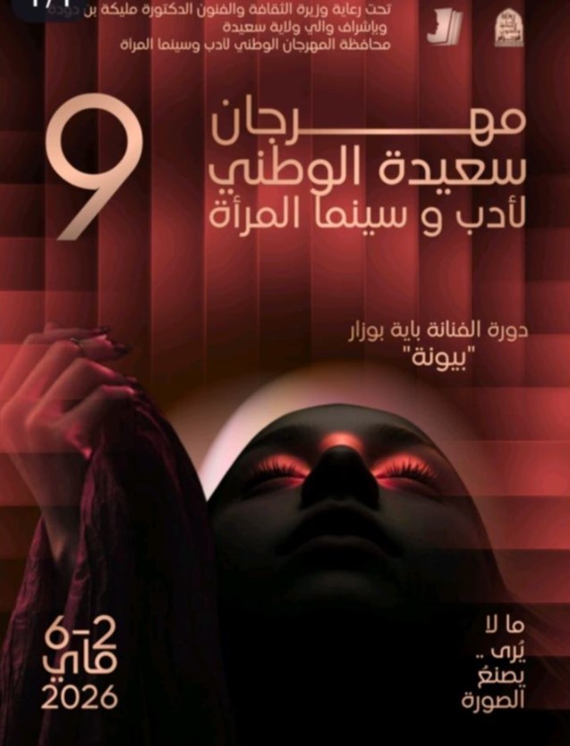 تستعد مدينة سعيدة، لاحتضان المهرجان الوطني لأدب وسينما المرأة، في دورته التاسعة، في الفترة الممتدة من 2إلى 6 ماي2026 تحت شعار ” ما لا يرى يصنع الصورة”، والتي سوف ترفع، لروح الفنانة باية بوزار ” بيونة” على أن تكون، دولة تونس الشقيقة ضيف شرف الدورة، وتعرف مشاركة كل من تونس وفلسطين وإسبانيا، محطة تتزاوج فيها ثنائية الأدب والسينما تكون المرأة القائدة فيه طيلة هذه الفترة.