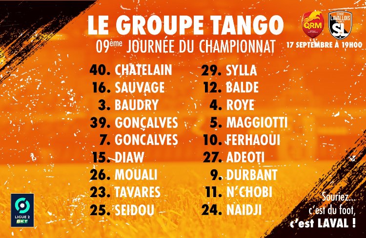وأعلن التقني أوليفيي فرابولي مدرب فريق لافال، الجمعة، عن قائمة تضمّ 18 لاعبا، يوجد بينهم المدافع حمزة موعلي. استعدادا لِمواجهة المضيف نادي كوفيي، بِرسم الجولة التاسعة من عمر البطولة الفرنسية للقسم الثاني.