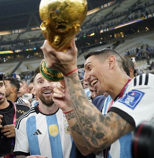 وذكرت صحيفة “كلارين” الأرجنتينية، الأربعاء، أن مواطنين لها حضروا نهائي المونديال القطري في المدرجات، جلبوا معهم كأسا عالمية محلّية الصّنع. وبعد نهاية مباراة “التانغو” و”الديكة”، منحوها لِأحد لاعبي منتخب الأرجنتين، فحملها ميسي وطاف بها عبر أرجاء ملعب “لوسيل”، قبل أن ينشر المُكلّفون بِإدارة صفحته في موقع “إنستغرام” الصورة.