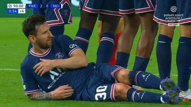 واستلقى ميسي على الأرض خلف جدار مدافعي “البي آس جي”، على أمل صدّ تسديدة محرز جناح مانشستر سيتي، في لقطة نادرة ومُثيرة للتهكّم.