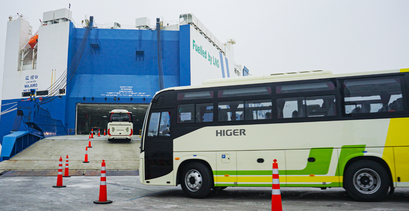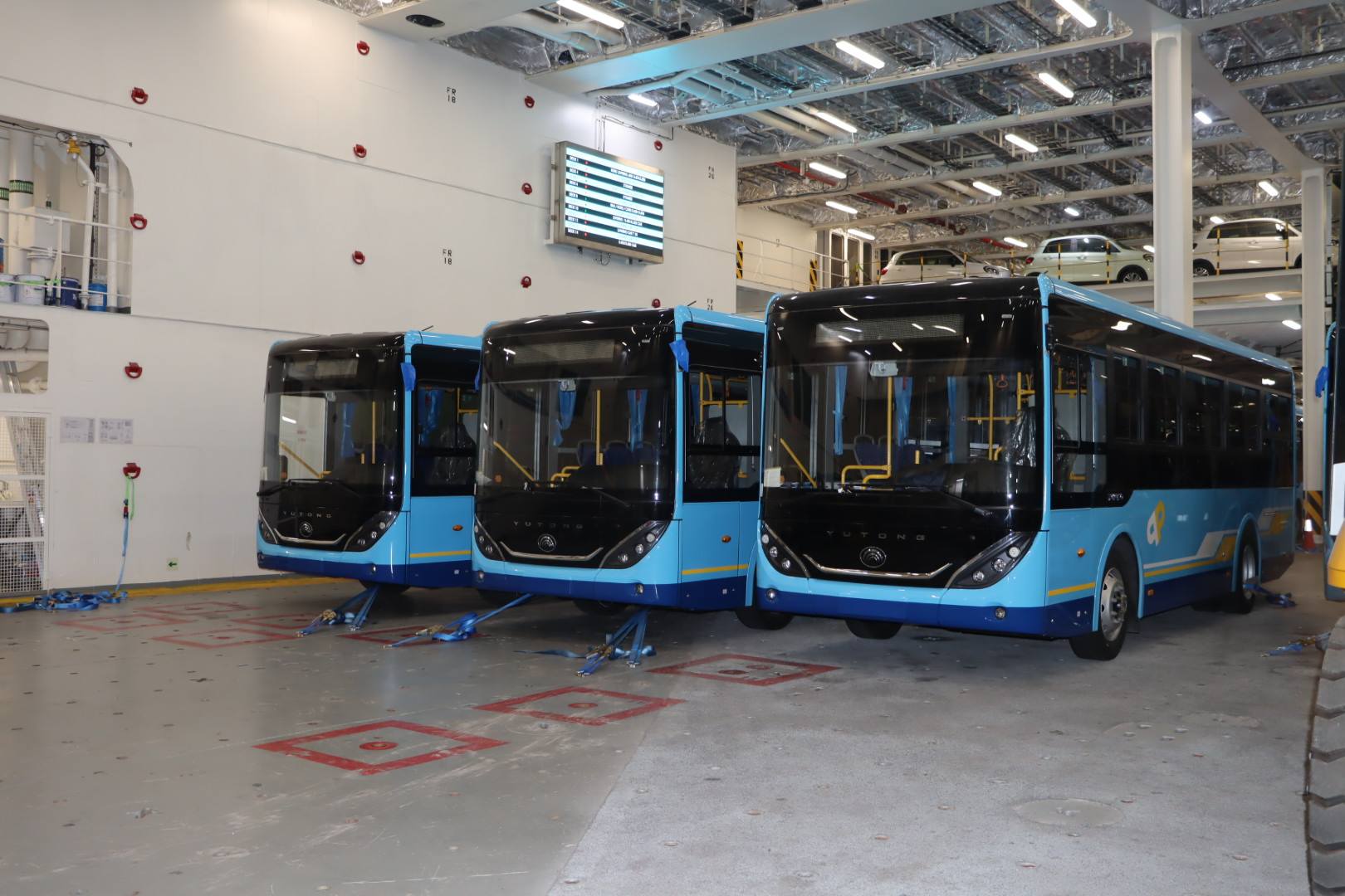 وتشمل الشحنة طرازات بطول 8 أمتار و11 مترًا، من سلسلة “Higer New V”. بالإضافة إلى حافلات بطول 12 متر.